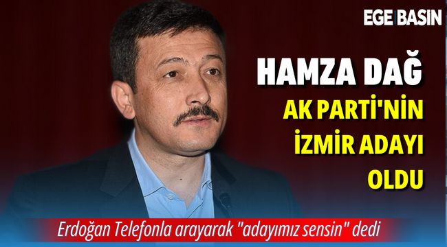 Cumhurbaşkanı Erdoğan'ın, Hamza Dağ'ı telefonla arayarak, "Seni aday olarak belirledik, hayırlı olsun" dediği belirtildiHamza Dağ'ın 20 Ocak Cumartesi günü İzmir'e geleceği ve AK Parti teşkilatının Dağ'ı havalimanında coşkuyla karşılayacağı açıklandı.